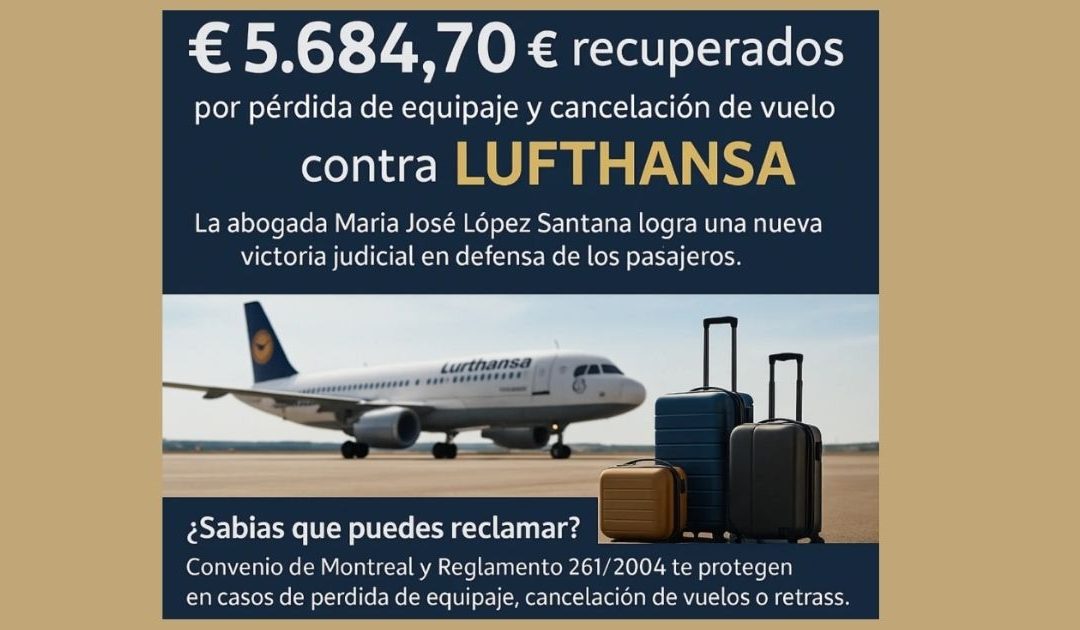 Un juzgado de Vigo ha condenado a Lufthansa a indemnizar a nuestra clienta con 5.684,70 € + intereses por los graves perjuicios sufridos tras la pérdida de equipaje y la cancelación de su vuelo.